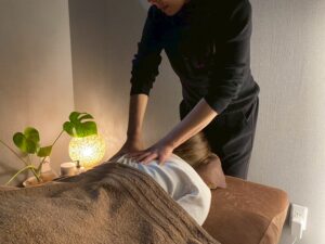 オイルトリートメントでは、筋肉のこわばりを緩めて、リンパの流れを整えていきます。